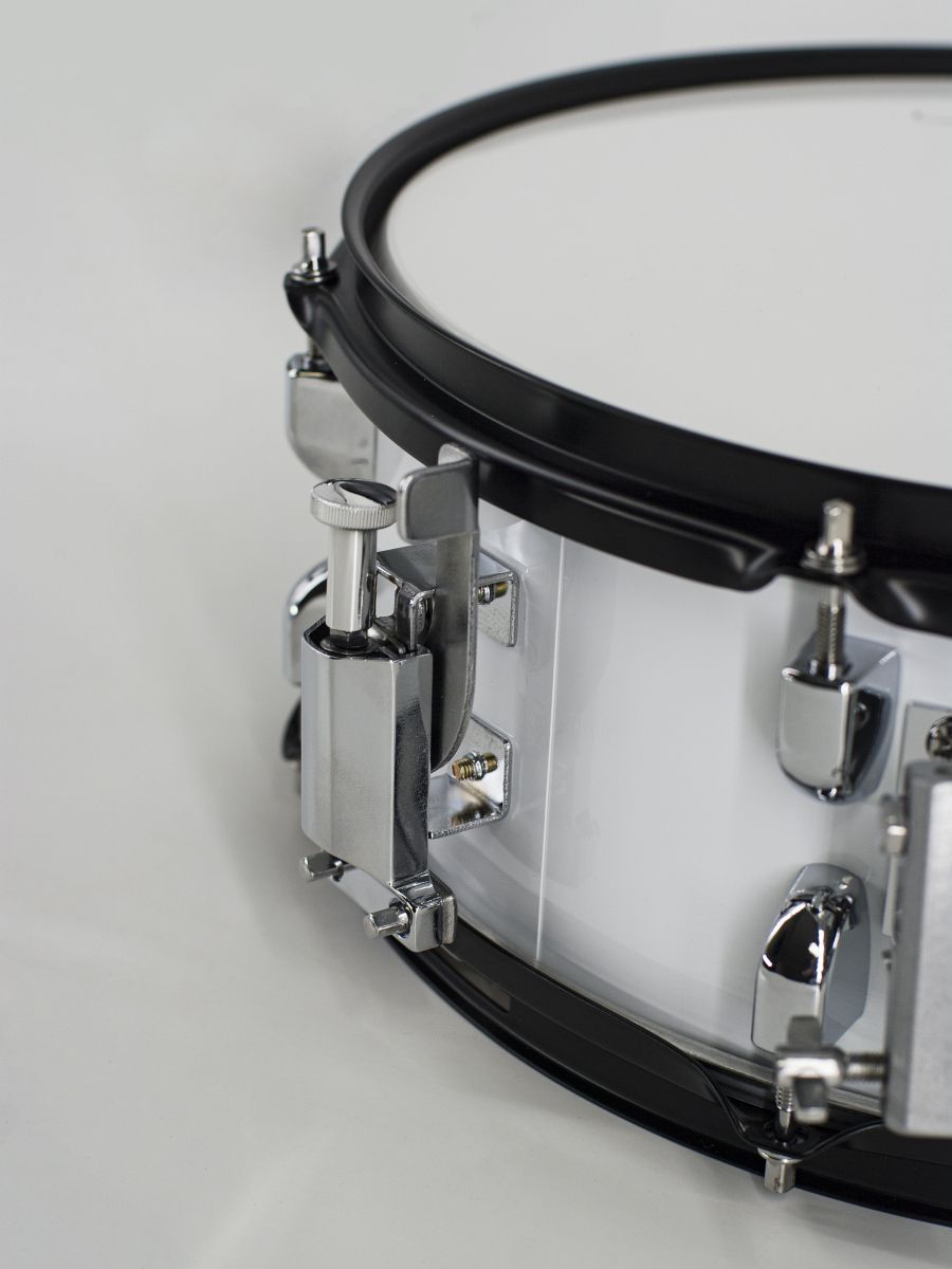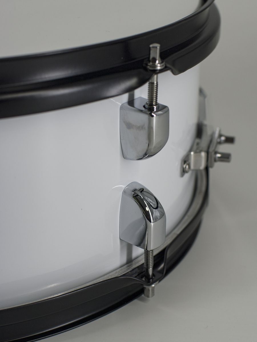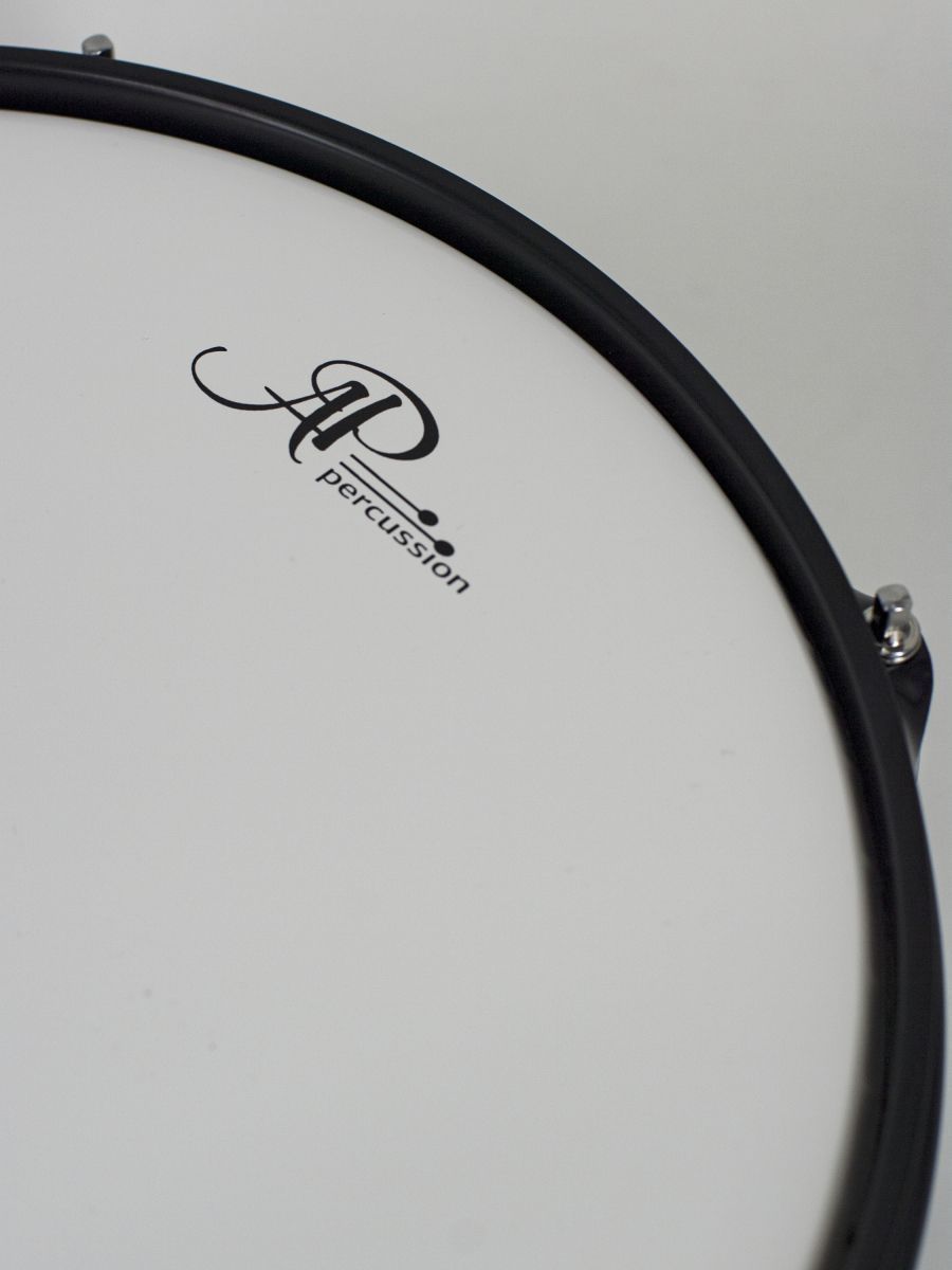AP Percussion MP-1455 Барабан маршевый малый 14"х5,5" белый, черная фурнитура, держатель белый, палочки