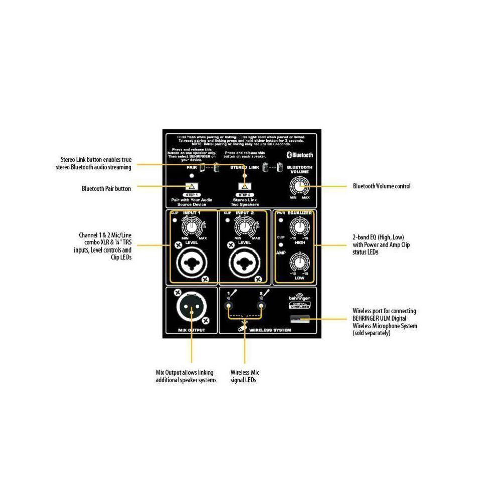 Behringer B115W Акустическая система активная, 2-х полосная, 15", 1000Вт, усилитель класса D, встроенный микшер, Bluetooth, порт для подключения беспроводного радиомикрофона