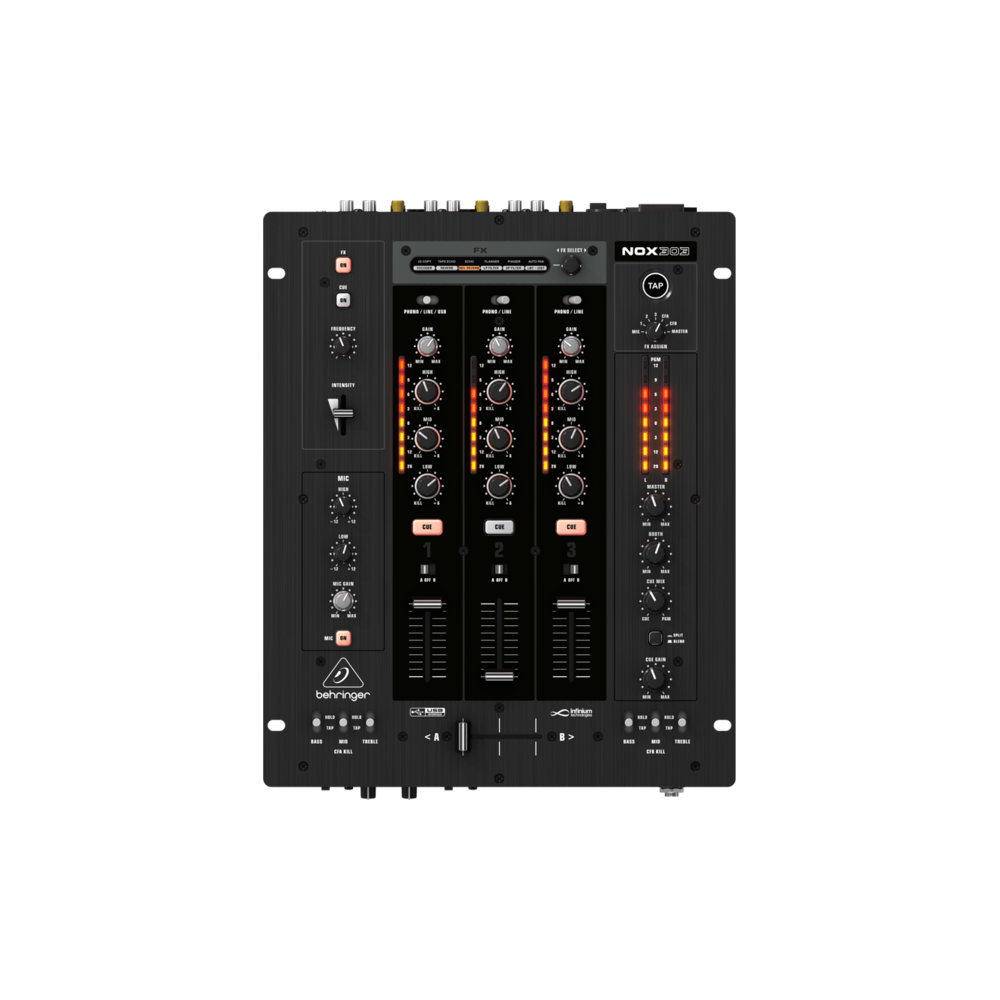 Behringer NOX303 DJ Пульт микшерный 3-канальный с VCA кроссфейдером, синхронизируемыми эффектами, USB аудио интерфейсом
