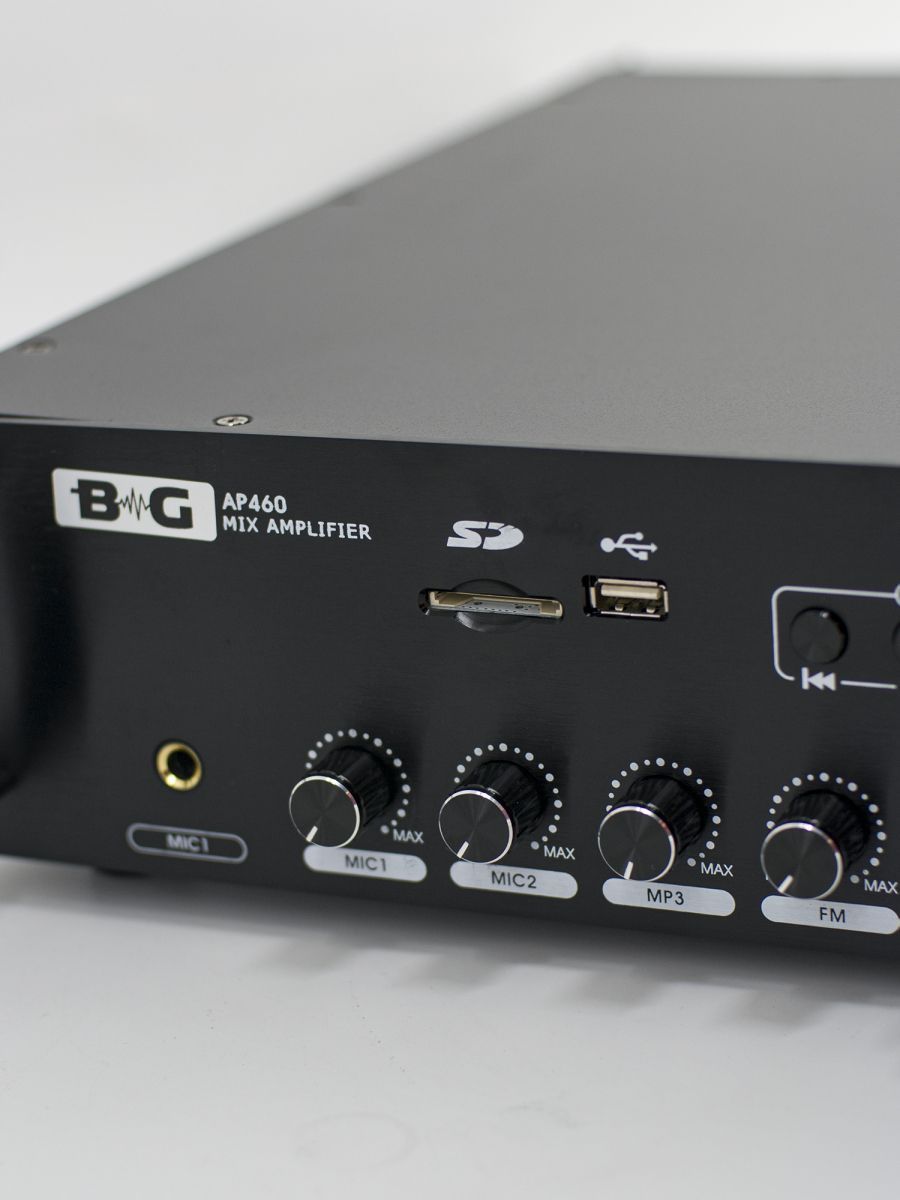BG AP460 Микшер усилитель трансляционный 460ватт, встроенный Mp3 плеер USB и SD , FM тюнер, 2 Mic, 1 Aux, 70V/100V