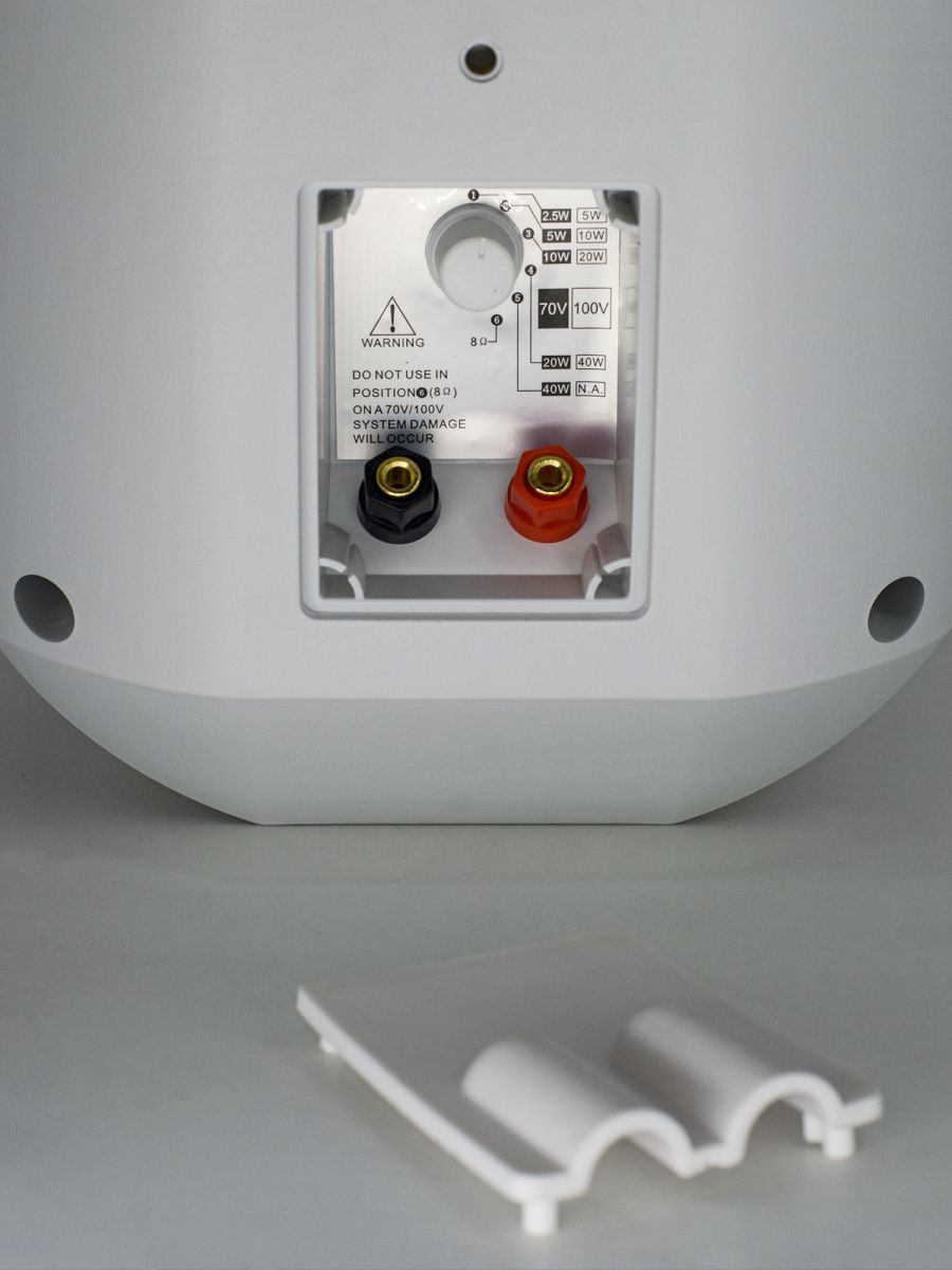 Описание модели: громкоговоритель настенный Мощность: 40-20-10-5Вт Спикеры: 6"+1" Silk Two Way Линейный вход: 100В/70В Материал корпуса: ABS В комплекте: кронштейн с углом поворота 360° Цвет: белый