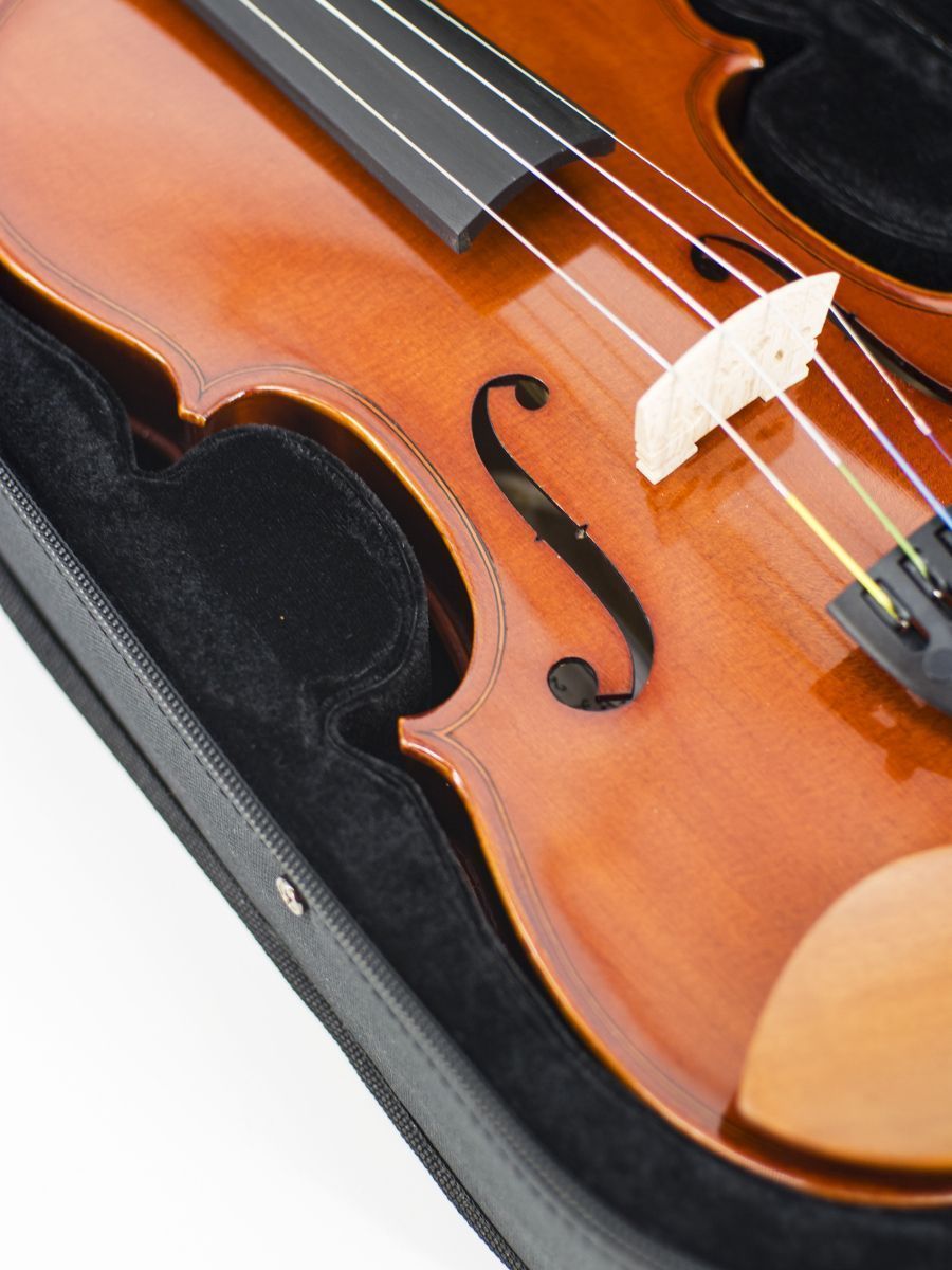 HMI HV-200CH 4/4 Скрипка Student 4/4, в кейсе, смычок, канифоль, верхняя дека - массив ели, нижняя дека, обечайки - массив клена, гриф - черное дерево, лак