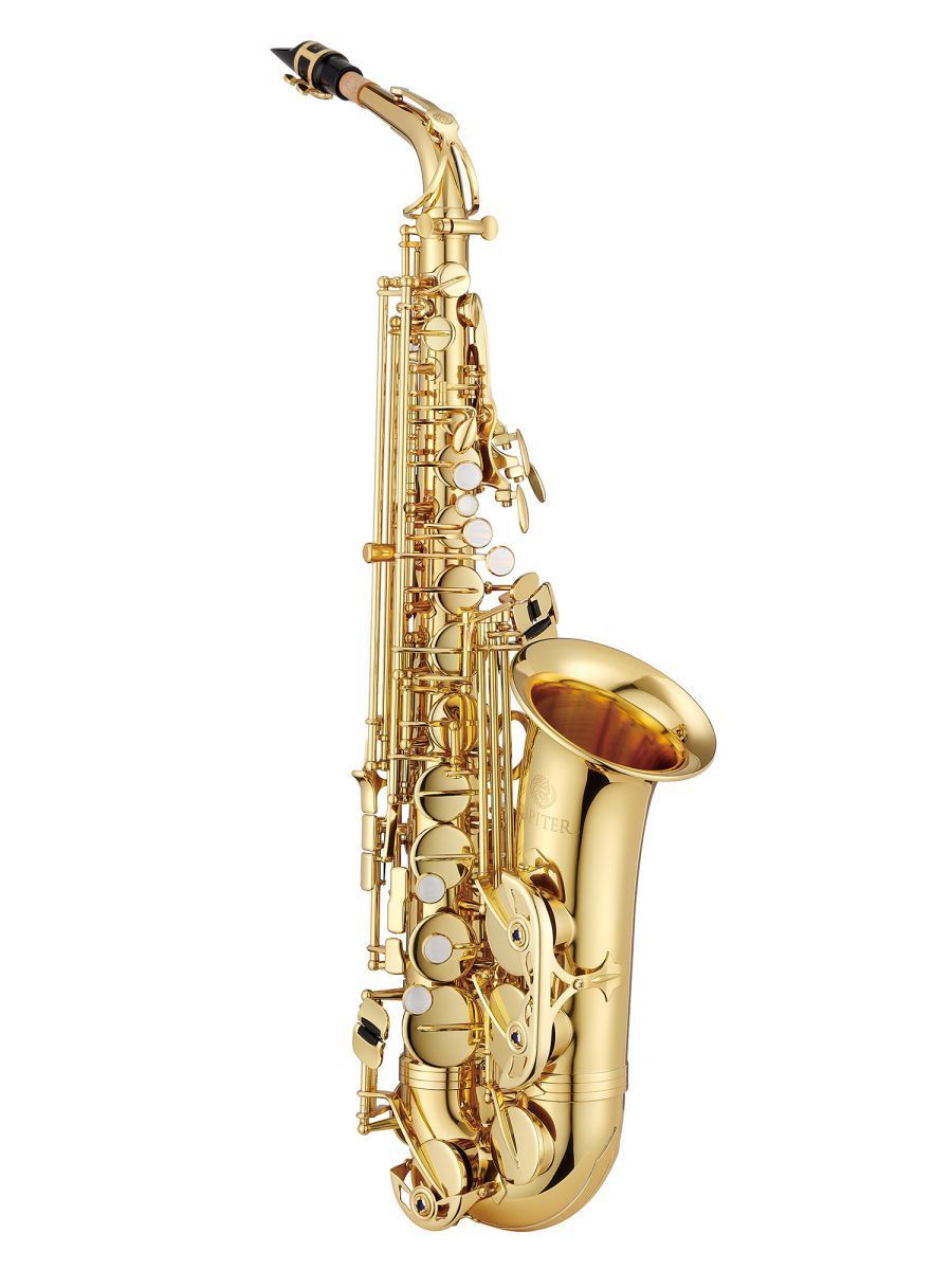 Jupiter JAS700Q Саксофон альт Eb, клапан верхнего F#, регулируемый упор большого пальца, металлические резонаторы, покрытие корпуса и клапанов золотой лак, облегченный кейс JKC-AS55FQ