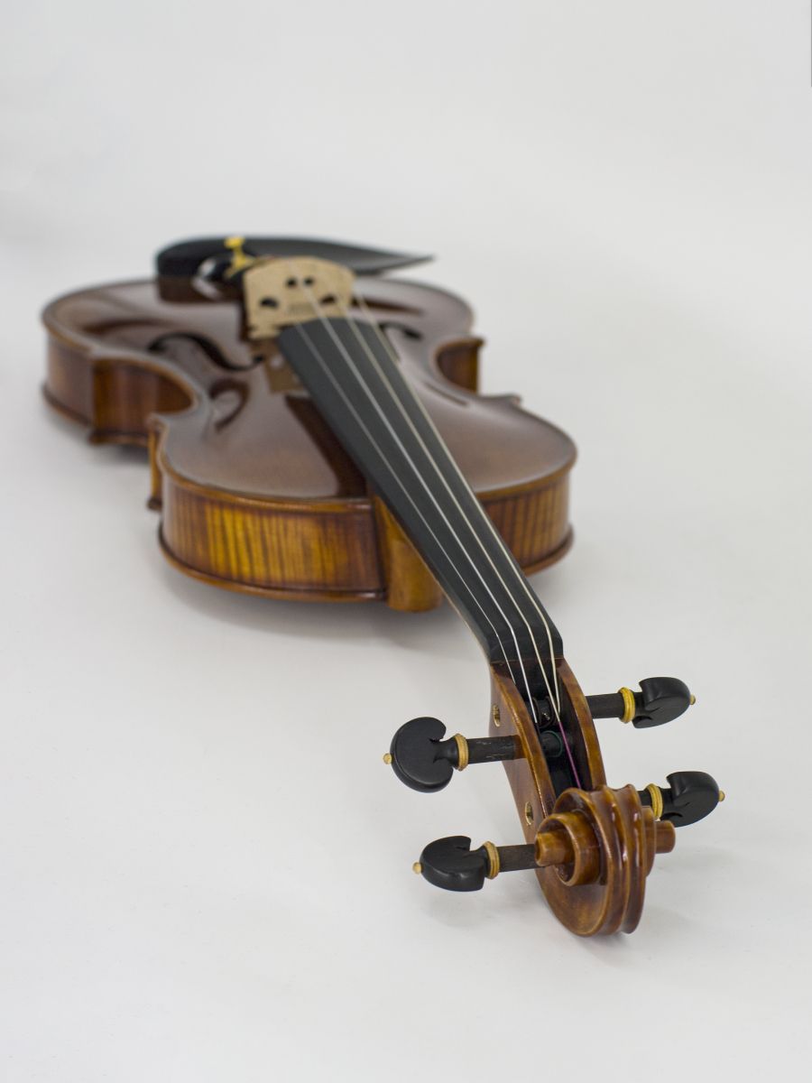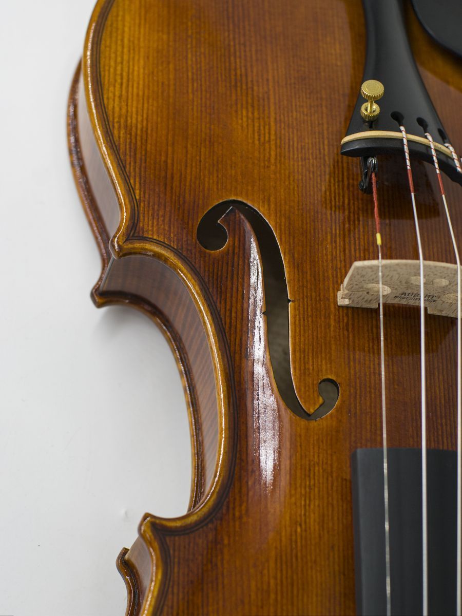 Krutz V 540-XO Скрипка мастеровая лютери 4/4, в кейсе, смычок, канифоль, верхняя дека - ель, нижняя дека, обечайка и низ - волнистый клен, гриф - черное дерево, лак