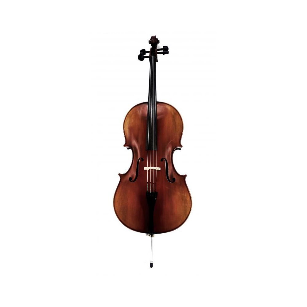 Особенностью этой модели является глубокое благородство и глубина тембра. Cольный мастеровой инструмент, изготовленный из высушенного естественным образом 8-летнего европейского волнистого клёна класса +ААА. Ручная античная лакировка с абсолютной имитацией старинной виолончели. Прозрачный лак в янтарно - коричневых тонах на золотистом грунте на основе природных смол и бальзамов с использованием масел и минералов передает стиль эпохи, подчеркивая красоту и звучание инструмента. Виолончель мастеровая 4/4, Montagnana, изготовленная из высушенного естественным образом 8-летнего европейского резонансного волнистого клёна и Тирольской ели класса +АА, струны Larsen/ Spirocore, кейс CE133.