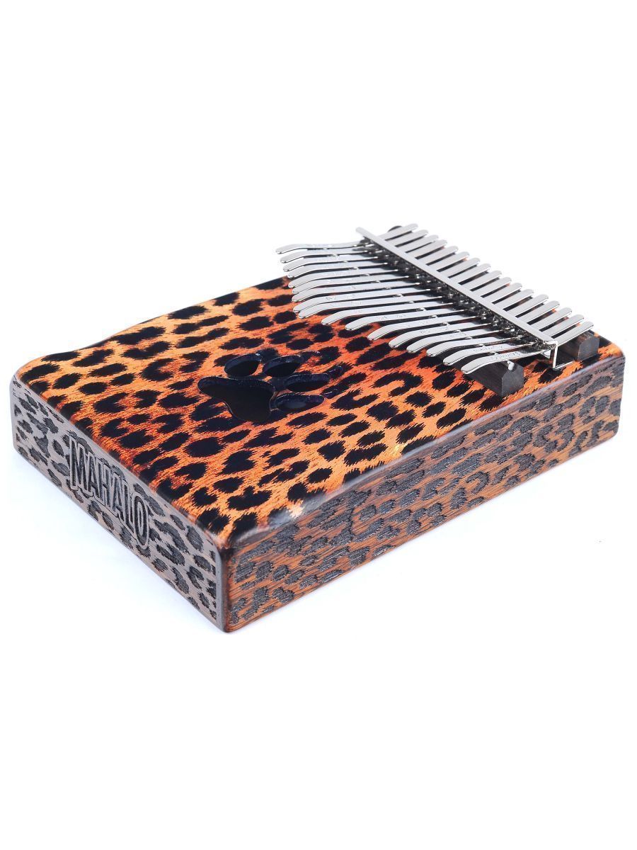 Mahalo MKA17CH Калимба 17 язычков, резонатор в виде деревянного короба, два звуковых отверстия на нижней деке, материал - трембези, в комплекте настроечный молоток, руководство пользователя, замшевый чехол для переноски, графический дизайн Cheetah