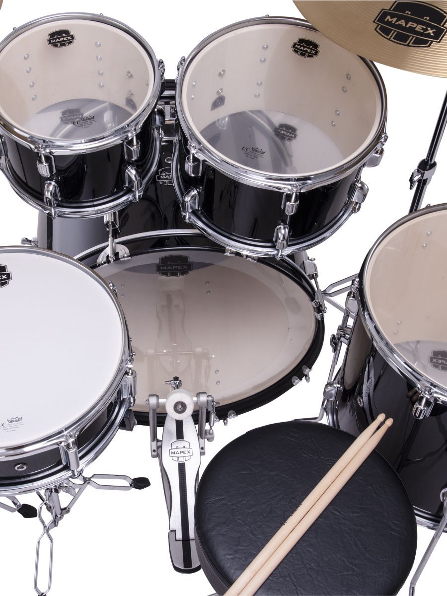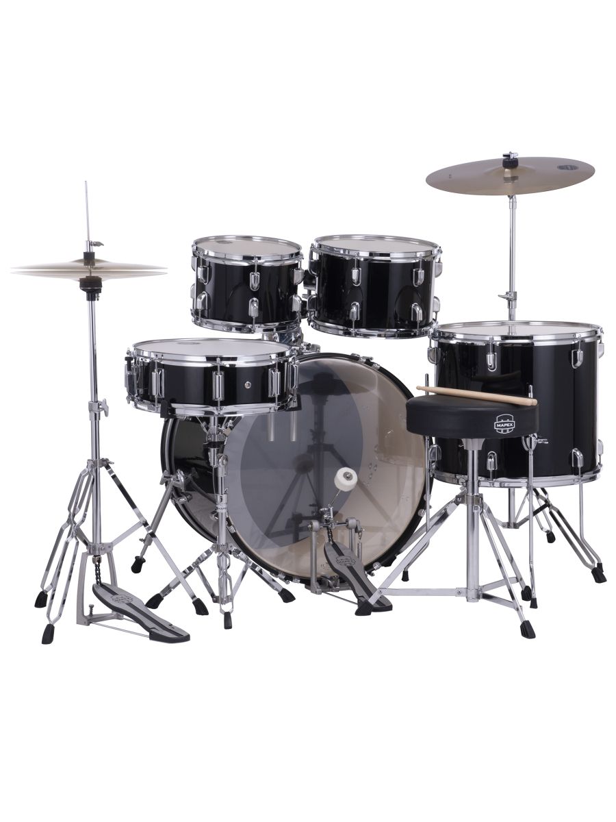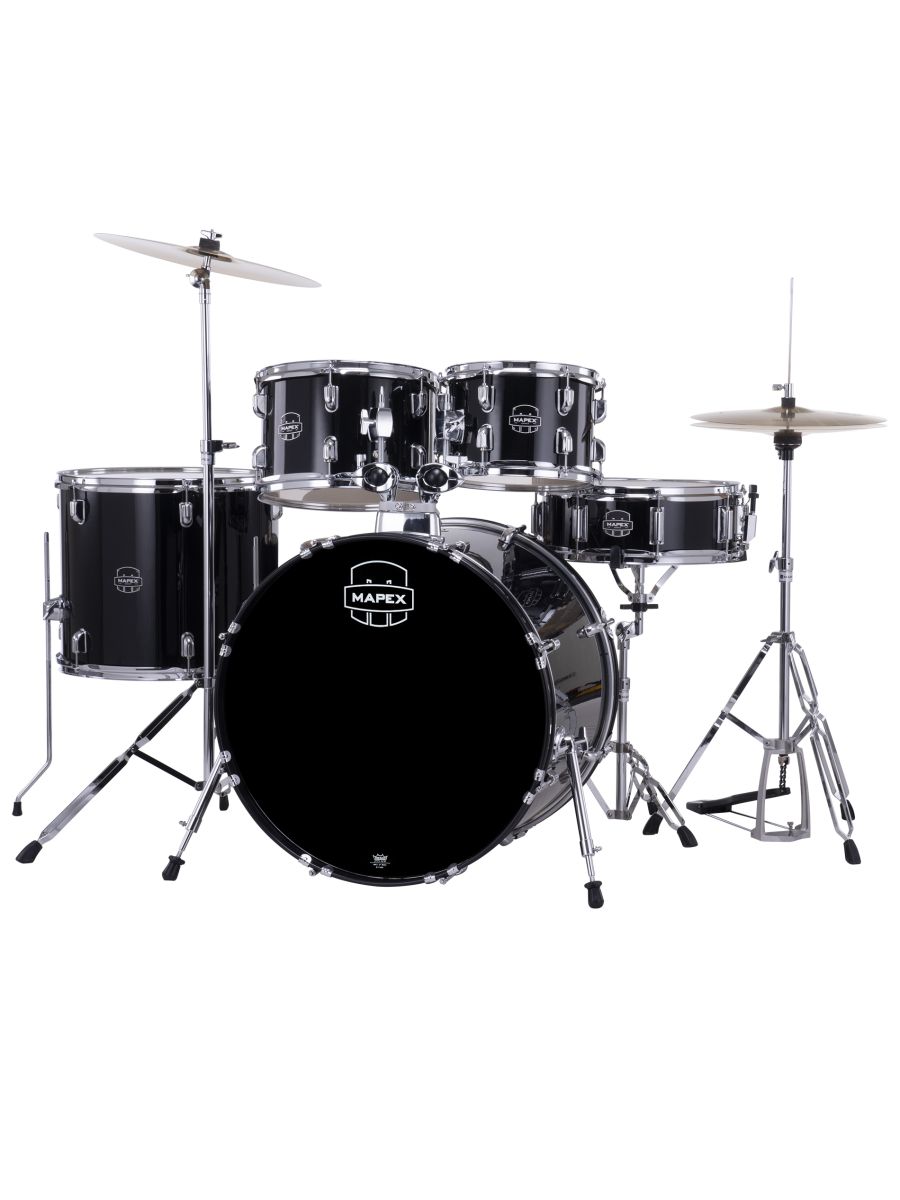 Mapex CM5295FTCDK Ударная установка из 5-ти барабанов, Comet series: BD2216, TT1007, TT1208, FT1614, SD1450, педаль P250, стойки: H250, C250, B250, S250, стул T400, тарелки 14" HIHAT +16" CRASH + 20" RIDE, цвет Dark Black