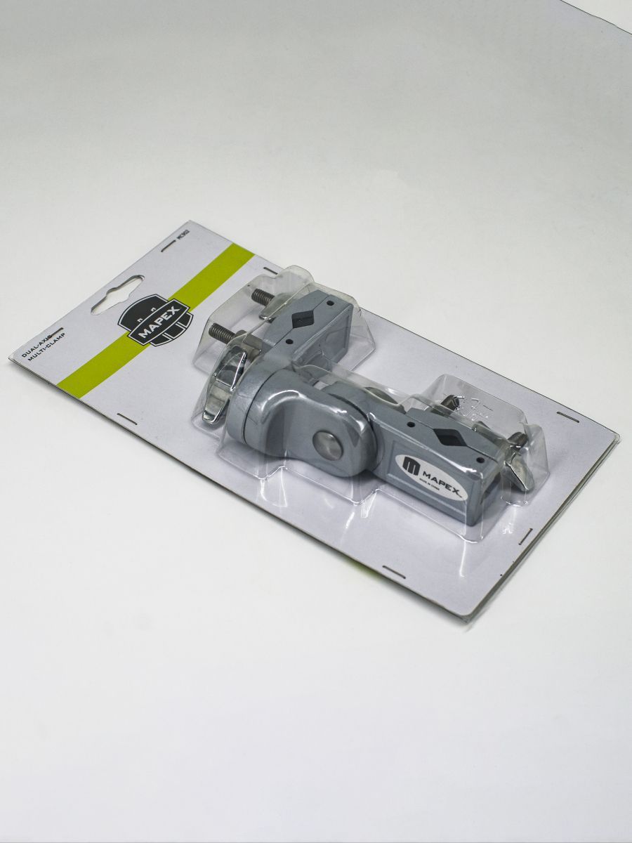 Многофункциональный зажим Mapex MC902 регулируется в двух направлениях. Он предназначен для крепления различных аксессуаров к существующим стойкам. Зажим имеет стандартный двойной механизм, который обеспечивает надёжное крепление.