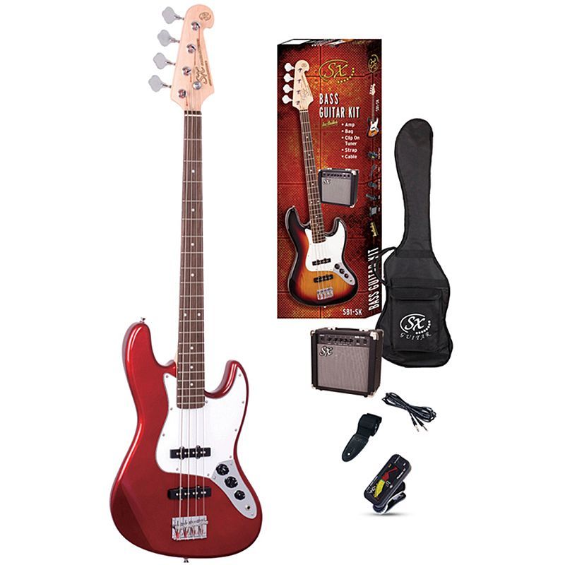 SX SB1-SK/CAR Набор: басгитара, корпус: липа, гриф: клен, накладка: палисандр, анкер, лады 21, Звукосниматели 2 Single Coil, контроллеры: 1 громкость, 2 тон, , цвет CAR, баскомбо 15Вт, кабель, ремень, тюнер, чехол