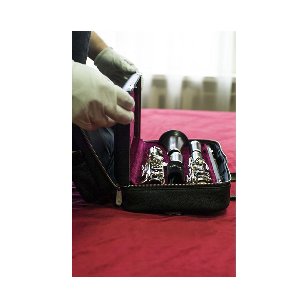 В комплекте: 2 бочонка, мундштук Vandoren, трости Vandoren, лигатура со шнуровкой и колпачок Vandoren, кейс Pochette французского стиля и чехол для кейса