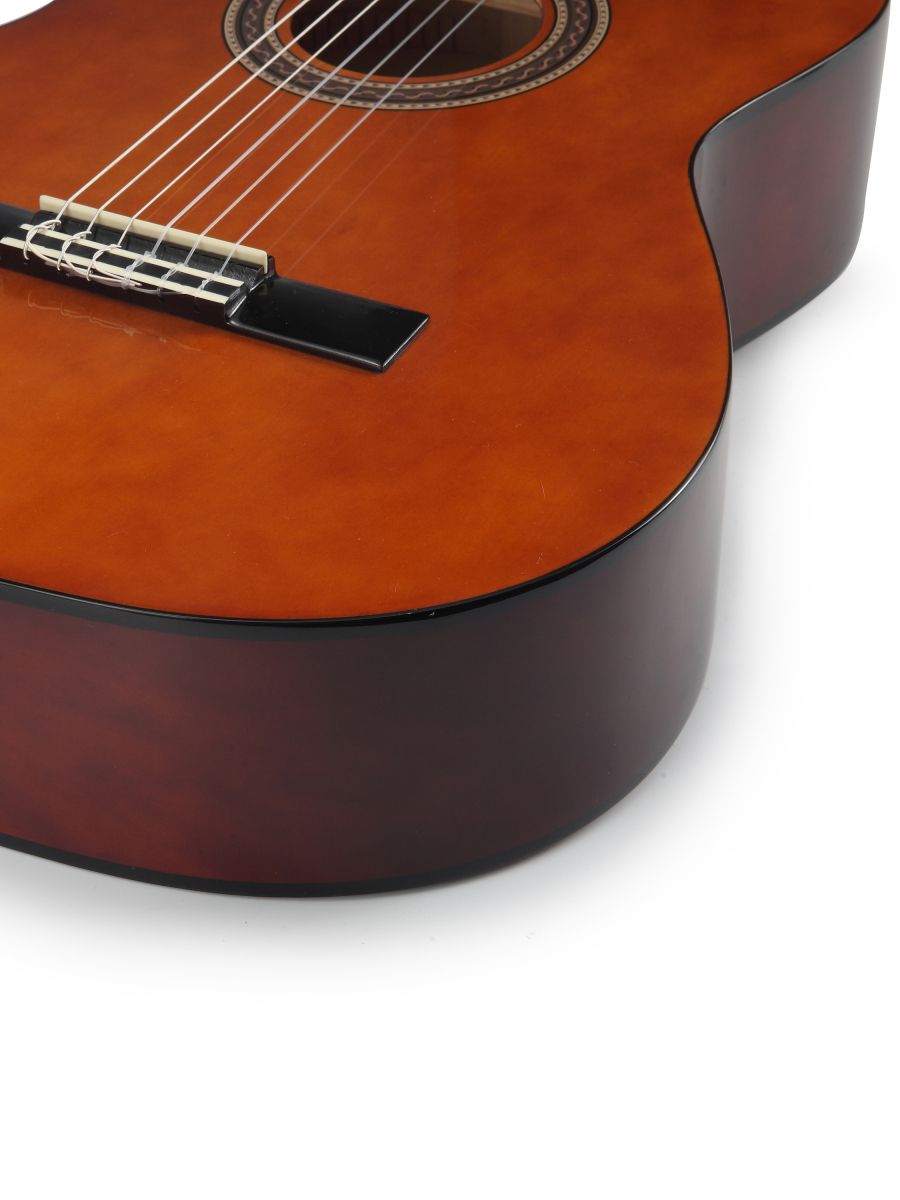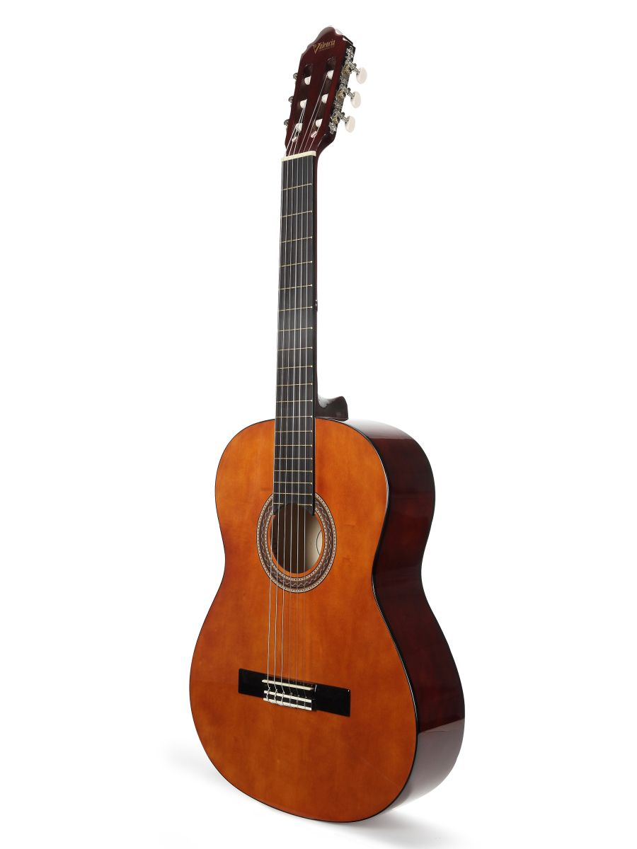 Valencia VC104 – это полноразмерная классическая гитара отличного качества. Инструмент подходит как для обучения в музыкальной школе, так и для домашних занятий. Valencia VC104 обладает насыщенным звучанием и имеет широкие тональные возможности. Корпус гитары изготовлен из липы, что положительно влияет на резонансные особенности инструмента. Гриф из нато имеет удобную форму и оптимальную ширину. Нейлоновые струны, установленные на комфортной для игры высоте, делают гитару удобной даже для самых юных исполнителей. Надежная колковая механика обеспечивает мягкость хода и прекрасно держит строй. Классическая гитара Valencia VC104 сочетает в себе прекрасный дизайн, доступную стоимость и превосходные звуковые характеристики.