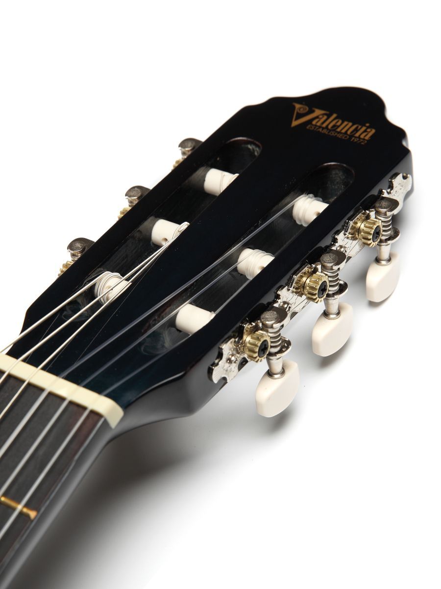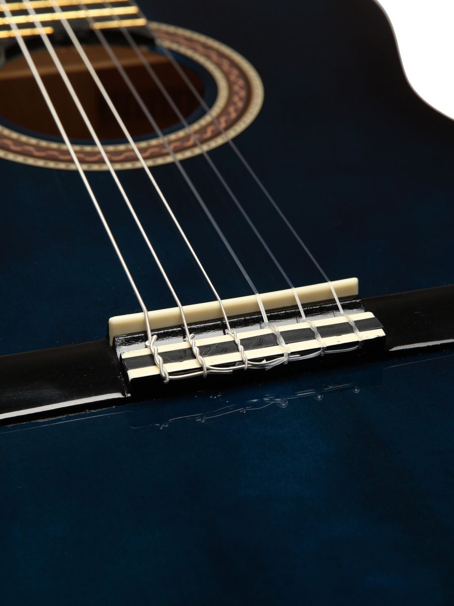 Valencia VC104BUS – это классическая полноразмерная гитара, которая отличается высоким качеством сборки, оригинальным дизайном и доступной ценой. Компания Valencia известна во всем мире, как производитель высококачественных гитар, которые продаются по приемлемым ценам. Инструменты производятся на собственном заводе в Индонезии под пристальным наблюдением команды квалифицированных специалистов. Гитары Valencia – это долговечная продукция, которая характерна высоким качеством звука. Корпус гитары изготовлен из липы, которая обладает усиленными резонансными особенностями. Гриф из нато имеет удобную форму и оптимальную ширину. Нейлоновые струны, установленные на комфортной для игры высоте, делают гитару удобной даже для самых юных музыкантов. Надежная колковая механика обеспечивает мягкий и точный ход, легкость при настройке, а главное – хорошо держит строй. Инструмент выполнен в синем цвете. Универсальная гитара Valencia VC104BUS подходит для различных музыкальных жанров и стилей игры.