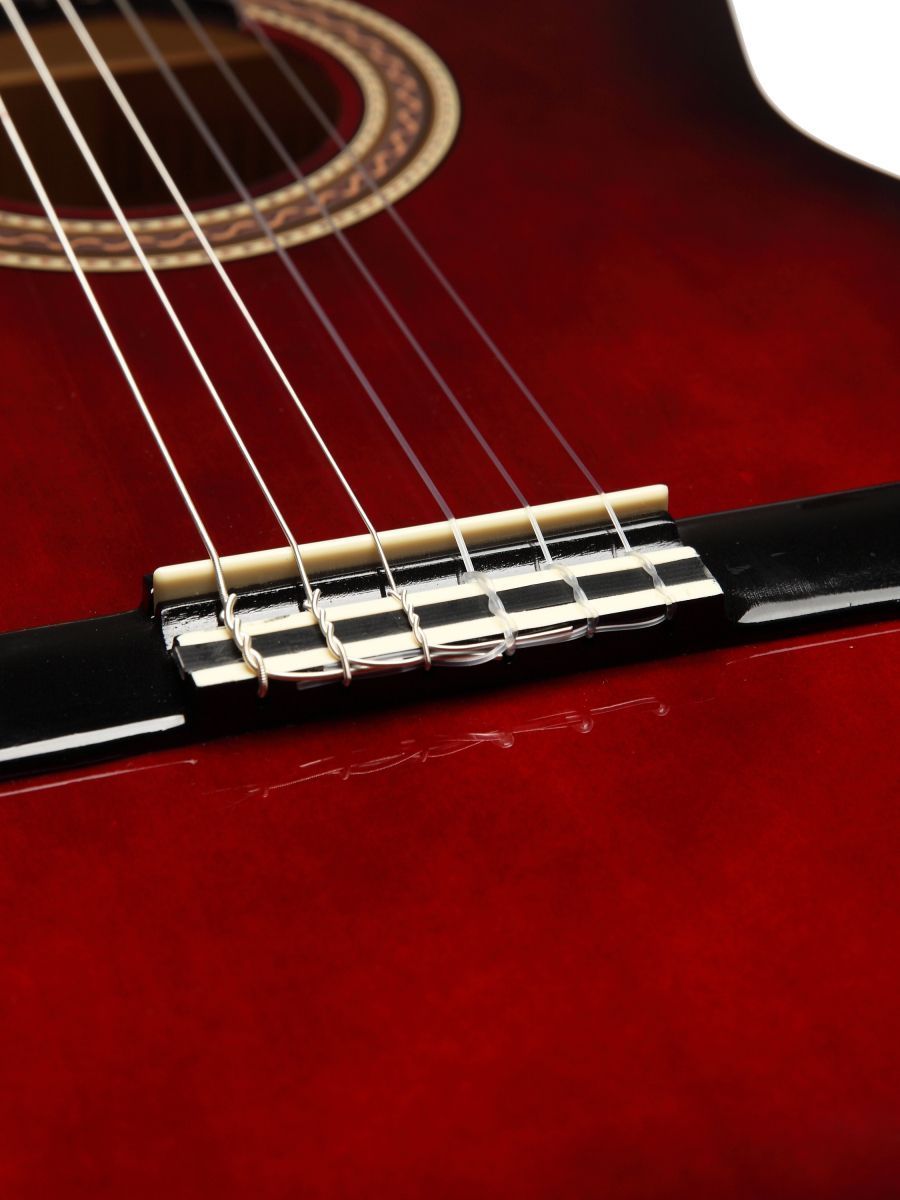 Valencia VC104RDS – это полноразмерная классическая гитара, которая станет прекрасным вариантом не только для начинающих музыкантов, но и для опытных исполнителей. Корпус инструмента изготовлен из липы, которая обладает усиленными резонансными особенностями. Гриф из нато имеет удобную форму и оптимальную ширину. Накладка из клена, нижний порожек из махагона. Нейлоновые струны, установленные на комфортной для игры высоте, делают гитару удобной даже для самых юных исполнителей. Надежная колковая механика обеспечивает мягкость хода и прекрасно держит строй. Классическая гитара Valencia VC104RDS отличается ярким, объемным и насыщенным звучанием. Огромным преимуществом инструмента является доступная стоимость.